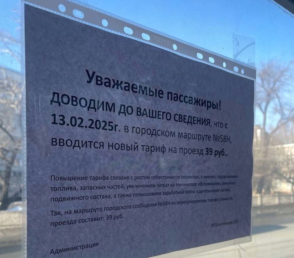 Новый тариф начнёт действовать с 13 февраля 2025 года, сообщается в объявлениях, которые администрация разместила в салонах автобусов.