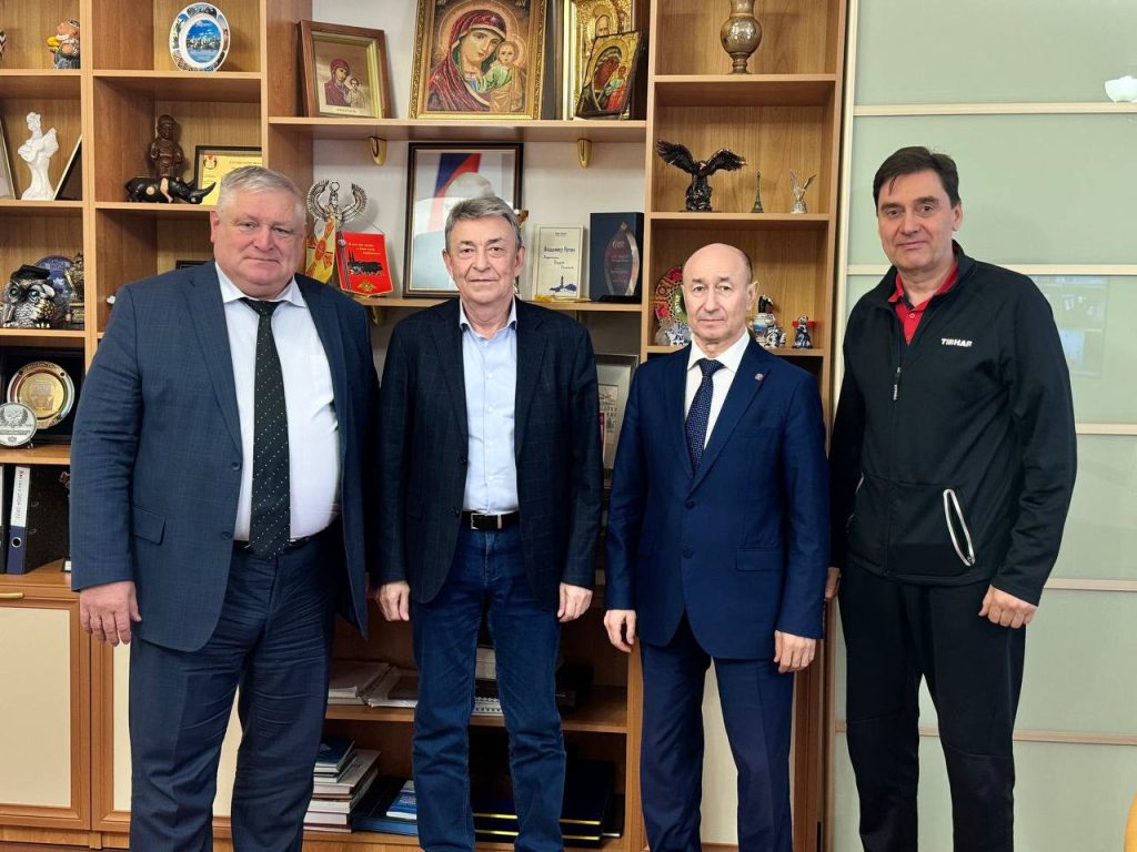 Рабочий визит завершился в Оренбургском медицинском университете. Виктор Батов, вице-президент клуба настольного тенниса «Факел-Газпром» Виктор Купчик и врач клуба Сергей Подлужный обсудили с ректором вуза Игорем Мирошниченко последние разработки в области восстановления спортсменов после интенсивных нагрузок и наметили план сотрудничества.