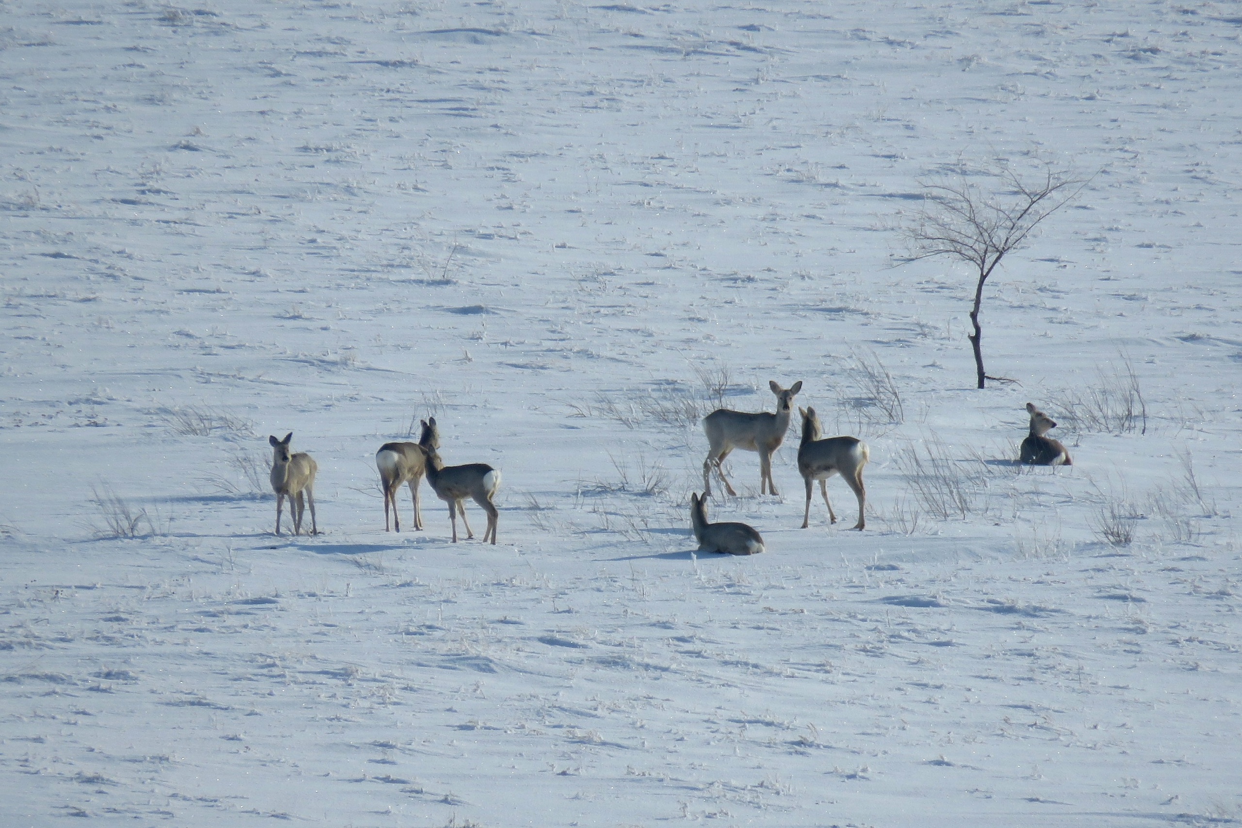 Дмитрий Немальцев отметил, что в бураны косули собираются во все более крупные табунки, а глубоко под землей, теплых норках просыпаются сурки.