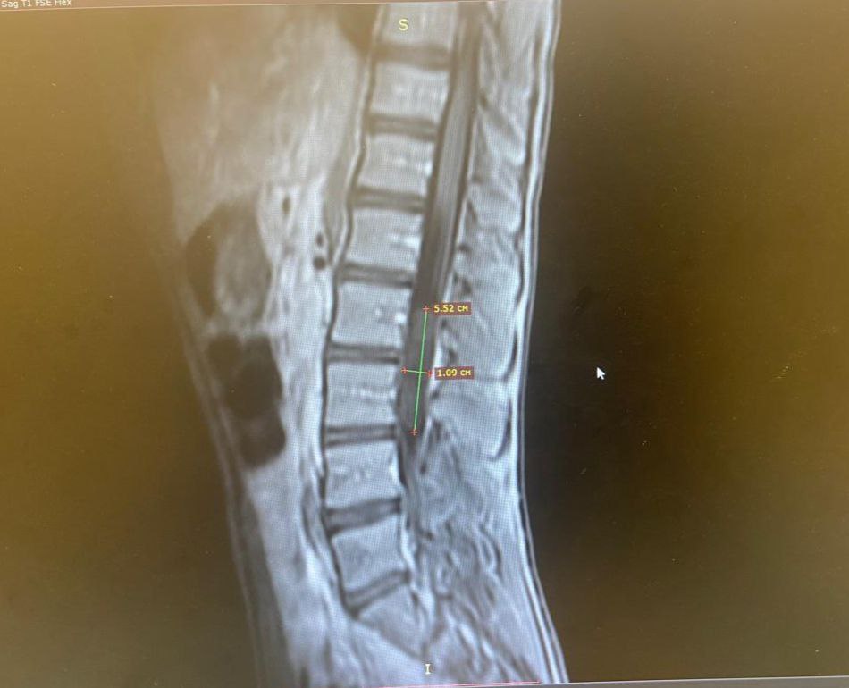 На снимке МРТ врачи обнаружили редкое доброкачественное образование – холестеатому. Она распространилась на два поясничных позвонка. Опухоль полностью перекрывала просвет спинномозгового канала, сдавливая корешки спинного мозга и вызывая болевой синдром у ребенка.