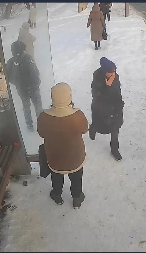 Была одета: синяя шапка, чёрный пуховик, синие дутые сапоги.