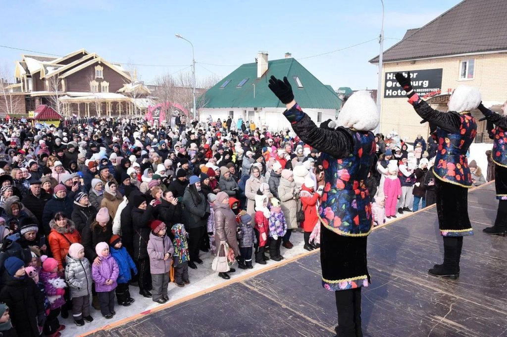 С главной сцены присутствующих с Масленицей поздравил первый заместитель главы Оренбурга Вячеслав Объедков.