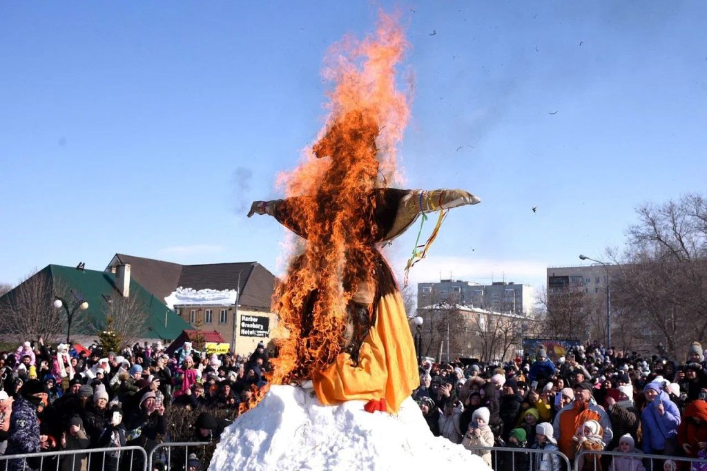 Кульминацией праздника стало традиционное сжигание чучела. Оренбуржцы попрощались с зимой и с нетерпением ждут наступления весны – климатической вслед за календарной.