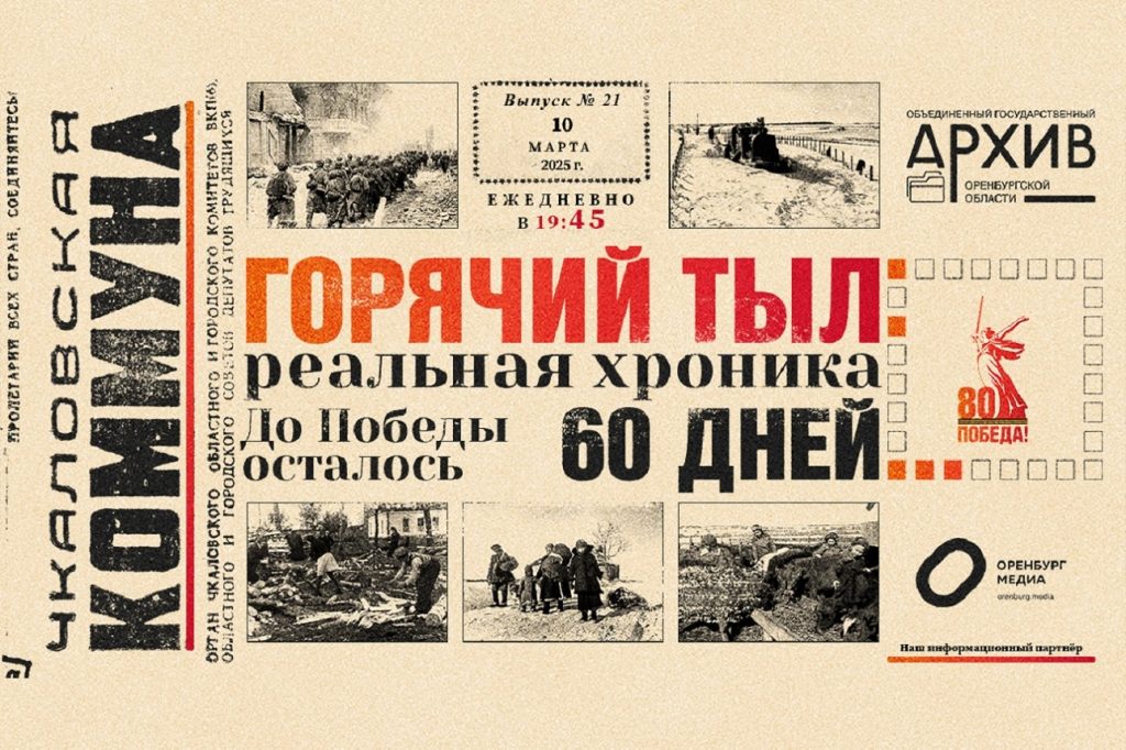 Проект «Горячий тыл: реальная хроника» подготовлен архивной службой Оренбургской области и посвящен 80-летию Победы в Великой Отечественной войне. Оренбург Медиа — информационный партнер проекта.