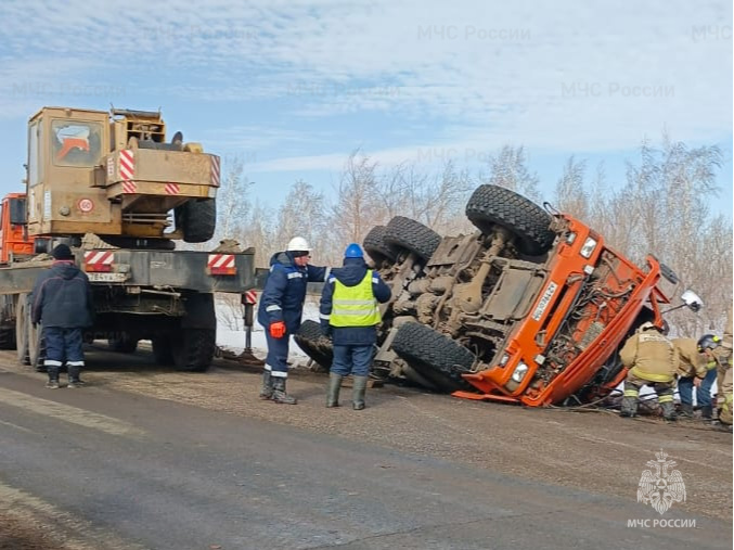 По оперативным данным, ДТП произошло 10 марта на участке автодороги «Лабазы – Герасимовка». Предварительно, водитель грузового автомобиля не справился с управлением. Транспортное средство опрокинулось на обочине на бок.