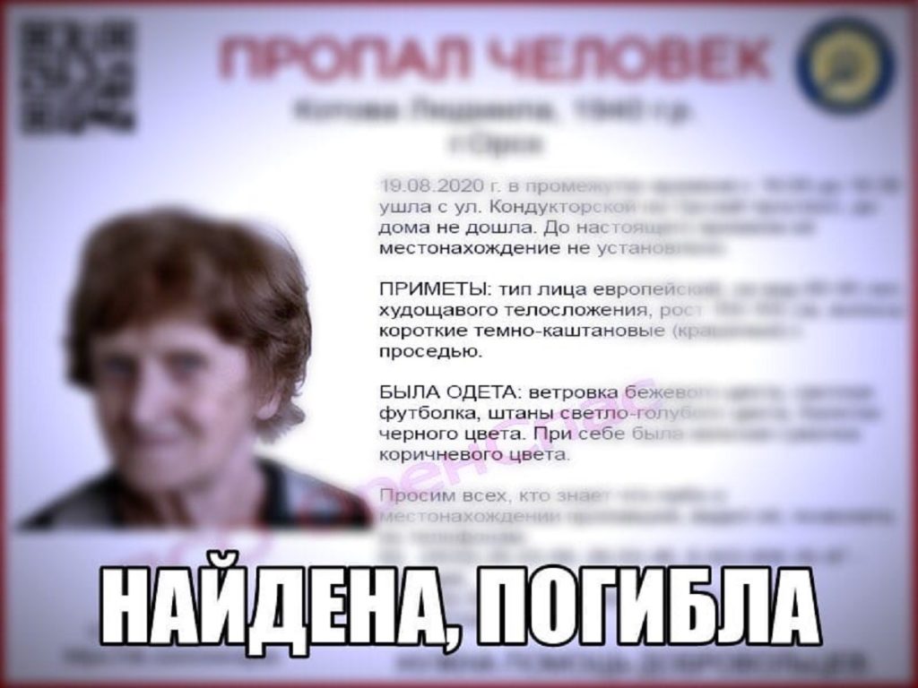 Напомним, жительница Орска пропала 19 августа. В промежутке времени с 19.00 до 19.30 она ушла с улицы Кондукторской к себе домой, но до дома не дошла. Её поисками занимались сотрудники полиции волонтёры ПСО «ОренСпас».