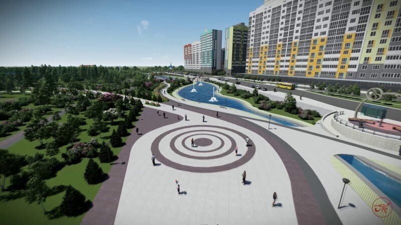 В рамках проекта благоустройства на территории площадью более 120 тысяч квадратных метров обустроят тропиночную сеть с покрытием из тротуарной плитки, велодорожки, беговые дорожки, детскую зону, скейтпарк и памп-трек. Запланированы два сухих фонтана, зона с тренажерами, зона с трибунами и площадка для выгула собак.