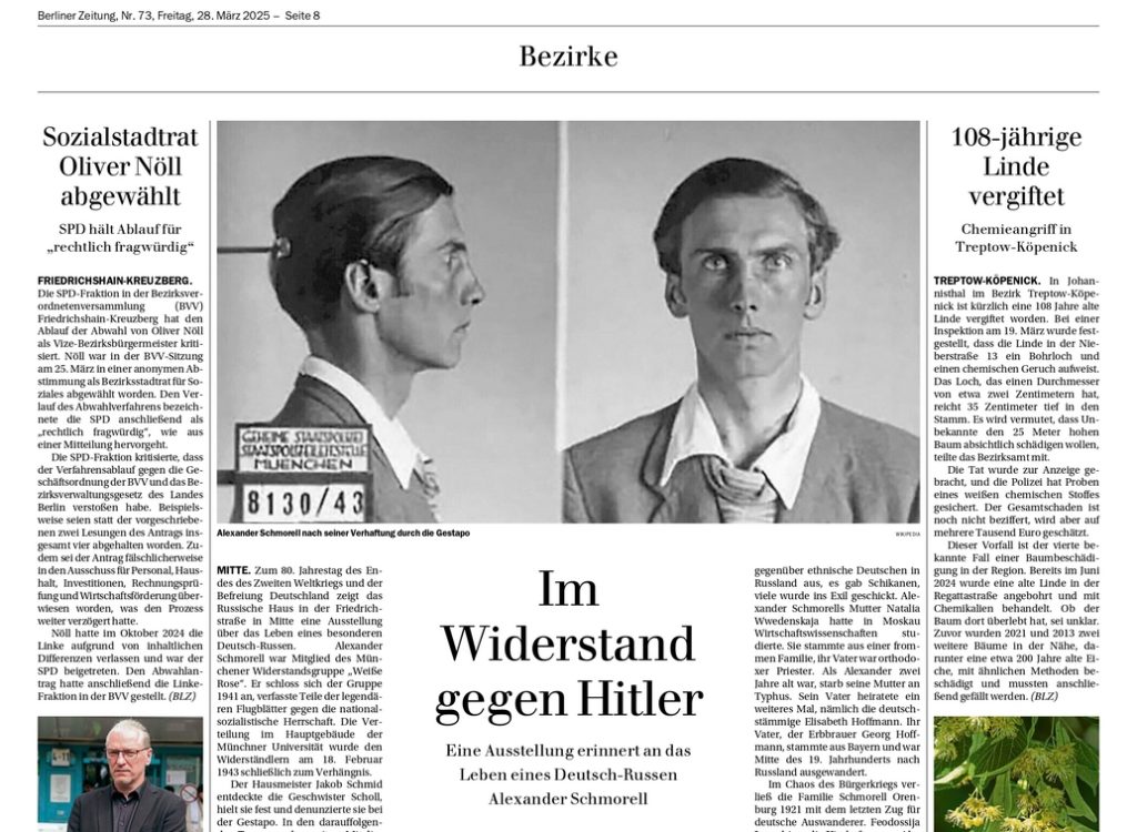Экспозиция «Русская душа «Белой розы» открылась в Русском доме в столице Германии. Она посвящена жизни и подвигу создателя антифашистского движения уроженца Оренбурга Александра Шмореля.