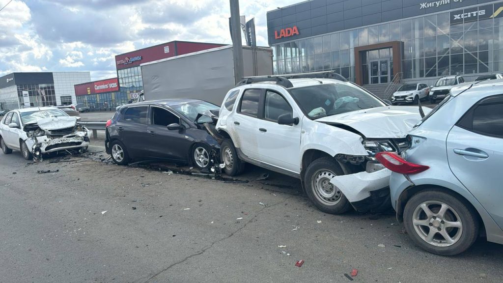 По предварительным сведениям, 5 апреля на 12 километре Нежинского шоссе в Оренбурге один за другим столкнулись ехавшие в одном направлении «Форд», «Киа», «Мазда», «Ауди» и «Рено».