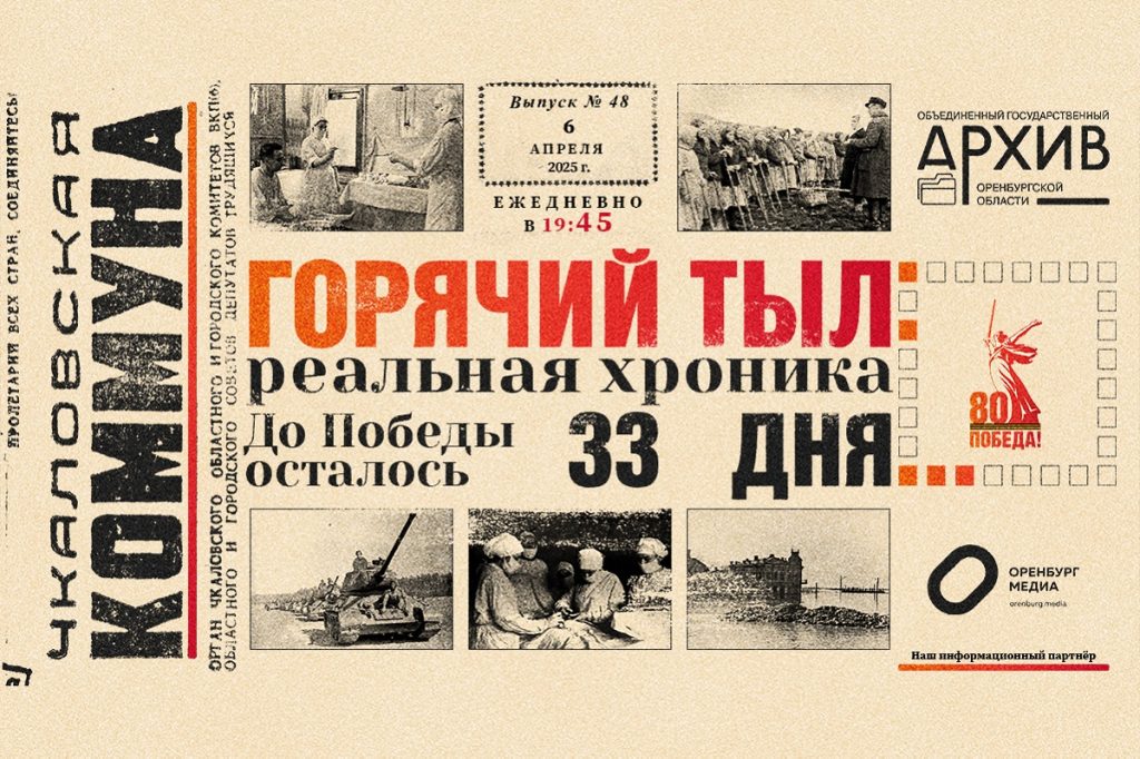 Проект «Горячий тыл: реальная хроника» подготовлен архивной службой Оренбургской области и посвящен 80-летию Победы в Великой Отечественной войне. Оренбург Медиа — информационный партнер проекта.