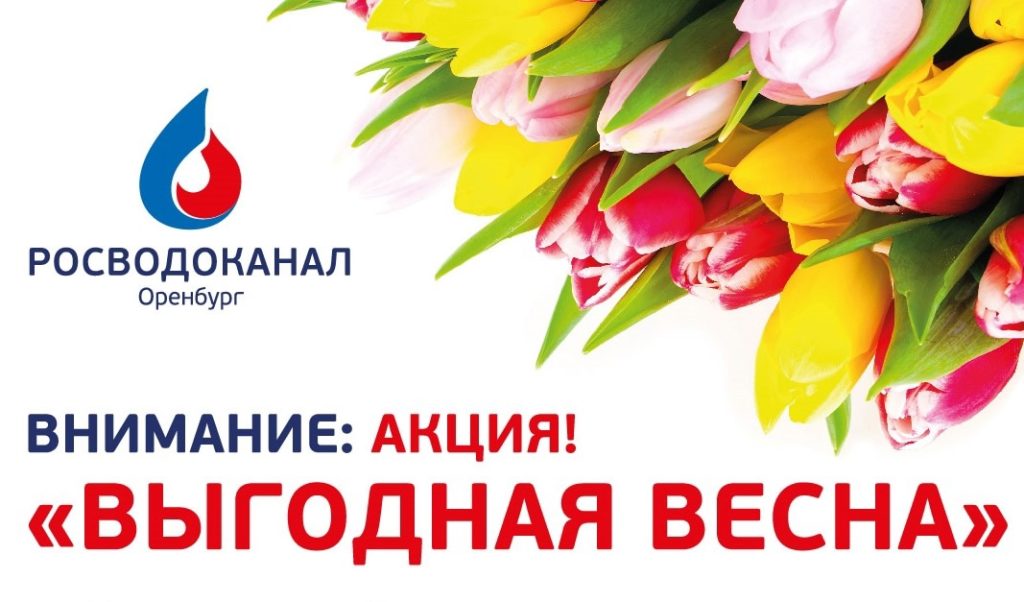 Росводоканал Оренбург продолжает акцию «Выгодная весна», во время которой потребители услуг холодного водоснабжения и водоотведения частных и многоквартирных домов, имеющие долги перед предприятием, могут закрыть их без штрафов и пени за просрочку.