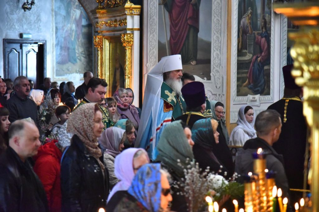 Сегодня с раннего утра у всех храмов и церквей Оренбурга продают вербы. Ночью священники провели всенощное бдение, а с утра начали торжественные службы. В Никольском соборе после всенощного бдения митрополит Петр прочитал Евангелие и 50-й псалом, а потом совершил молитву на освящение ваий и окропил святой водой веточки верб, принесенных молящимися.