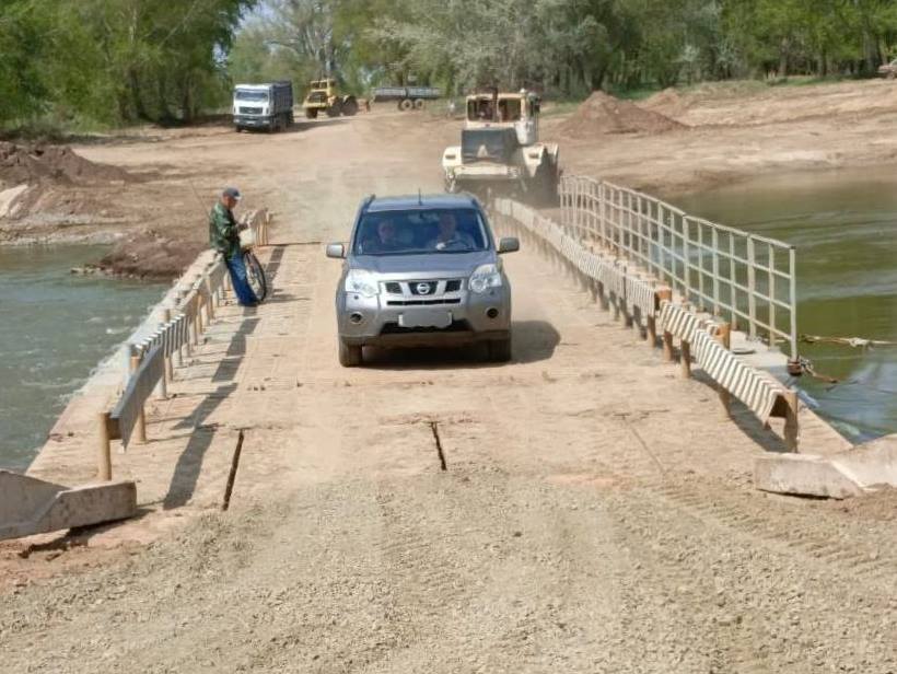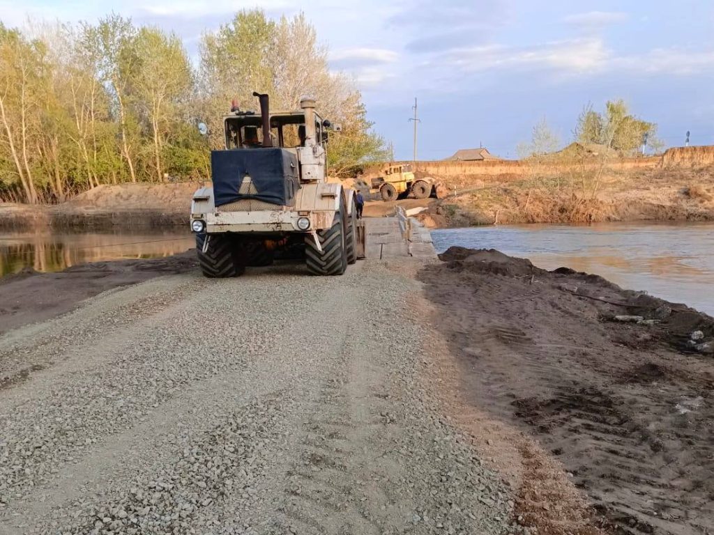 Понтонный мост начали монтировать после начала паводка. В настоящее время уровень воды в реке Илек снизился. После подготовки подрядчик АО «Оренбургремдорстрой» установил понтонный мост на прежнее место. К переправе отсыпали подъезд.