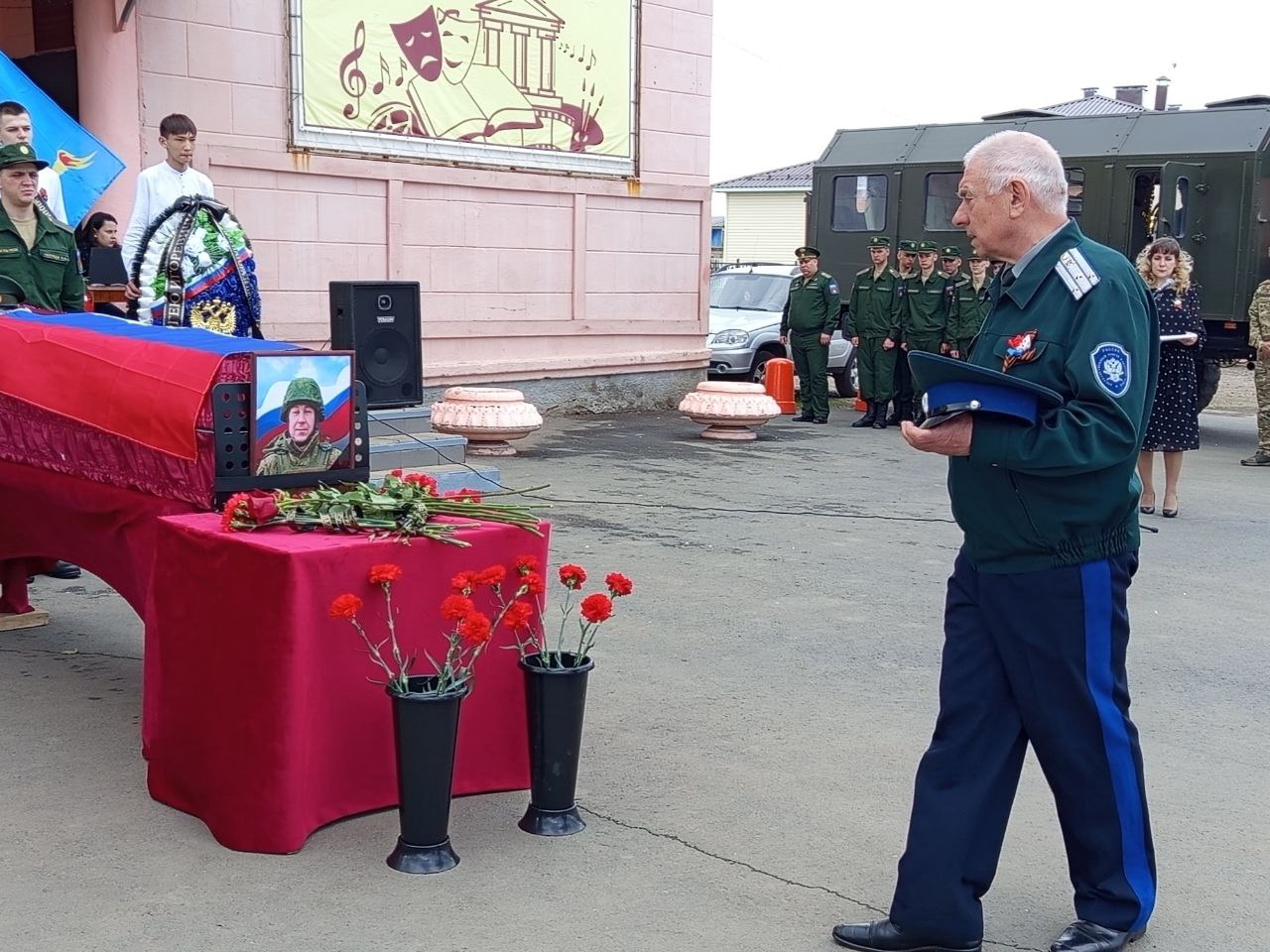 Траурная церемония прощания с хорунжим Оренбургского городского казачьего общества прошла в поселке имени 9 Января накануне, 28 апреля.