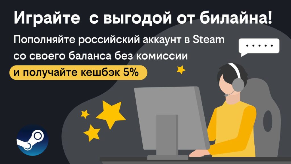 Билайн запустил акцию с кешбэком за пополнение кошелька в Steam. Оператор вернёт 5% с каждого перевода на российский аккаунт с баланса телефона. Это отличная возможность пополнить свой кошелёк на популярной платформе и обзавестись парочкой новых игр с выгодой.