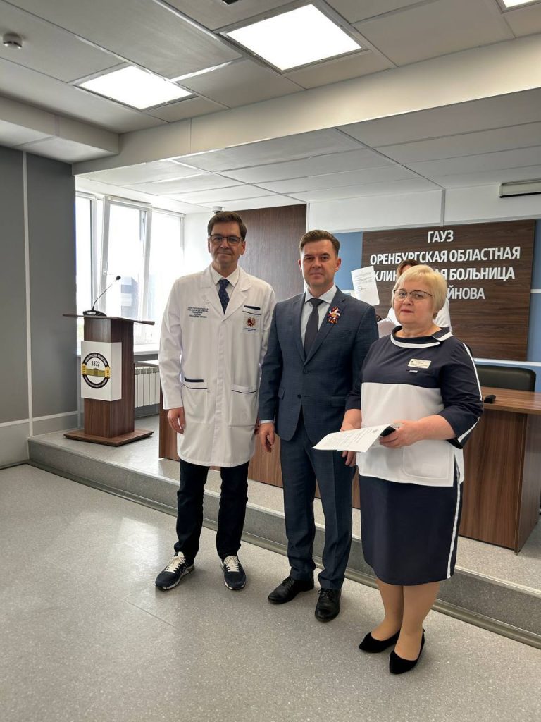 Исполняющий обязанности министра здравоохранения Оренбургской области Андрей Шатилов поздравил врачей больницы им. В.И. Войнова с получением званий «Заслуженный врач РФ».