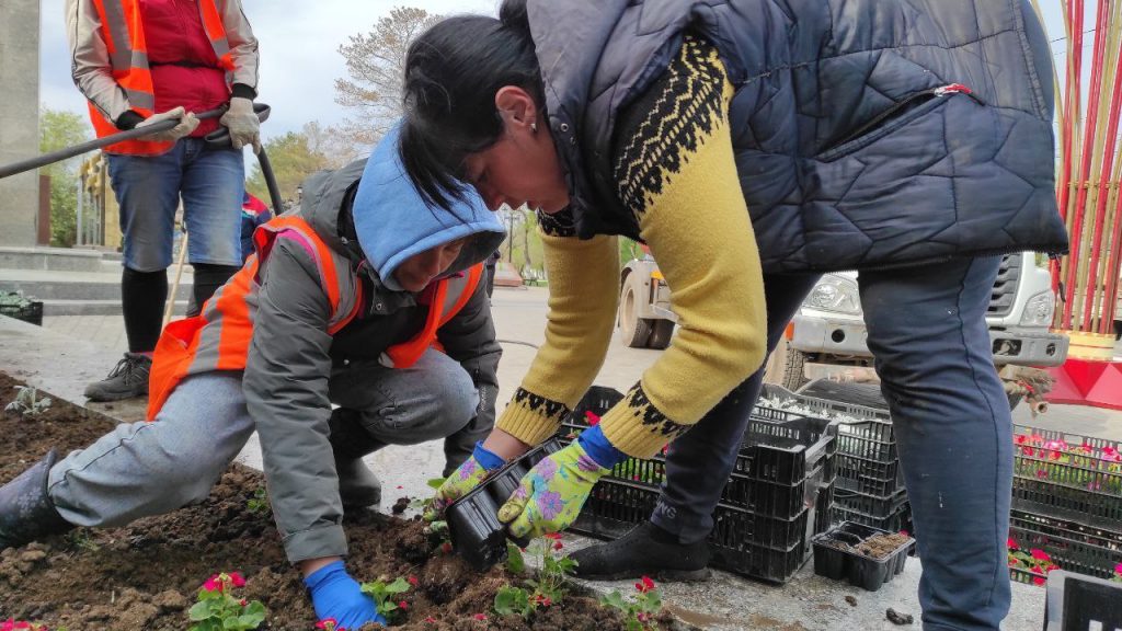 Первыми рассадой заполняют клумбы у мемориалов и памятников, чтобы к празднику они предстали во всей красе. Особое внимание уделяют главным памятным местам.
