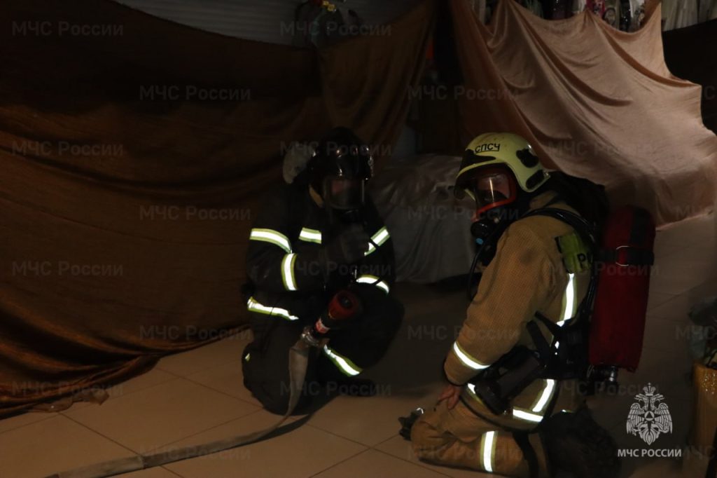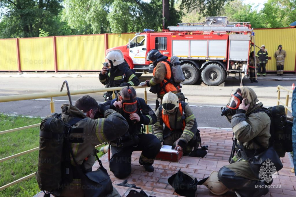 Пожарные расчеты в ходе тренировки провели разведку в помещениях торгового центра, эвакуировали условных пострадавших и ликвидировали импровизированное возгорание.