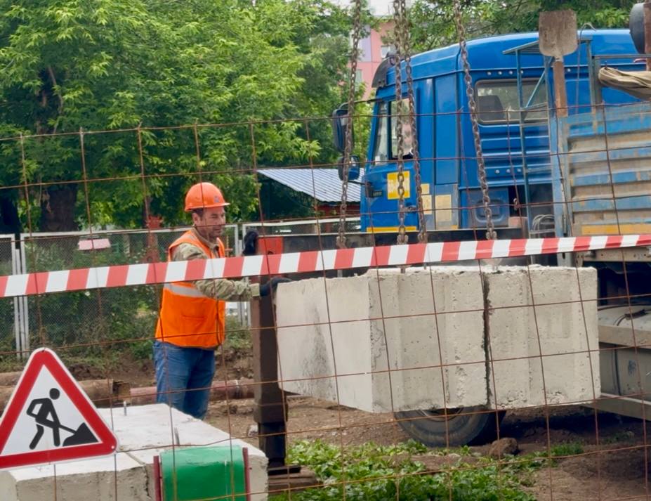 В настоящий момент идёт демонтаж старых сетей и установка железобетонных лотков, в которые уложат новые коммуникации. Рядом с местом проведения работ, в опасной близости от тепловых сетей, была расположена детская площадка. По договорённости с жилищной организацией, после завершения ремонта её перенесут за пределы охранной зоны теплотрассы.