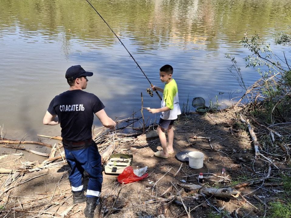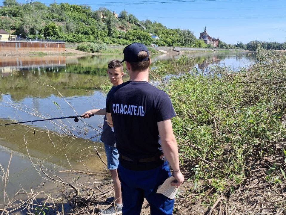 Профилактический рейд провели на берегу Урала в черте Оренбурга. В жаркий день у воды находились в том числе подростки. Они рыбачили.