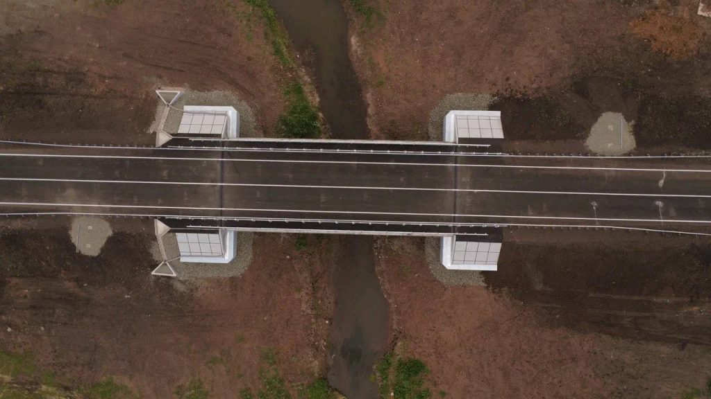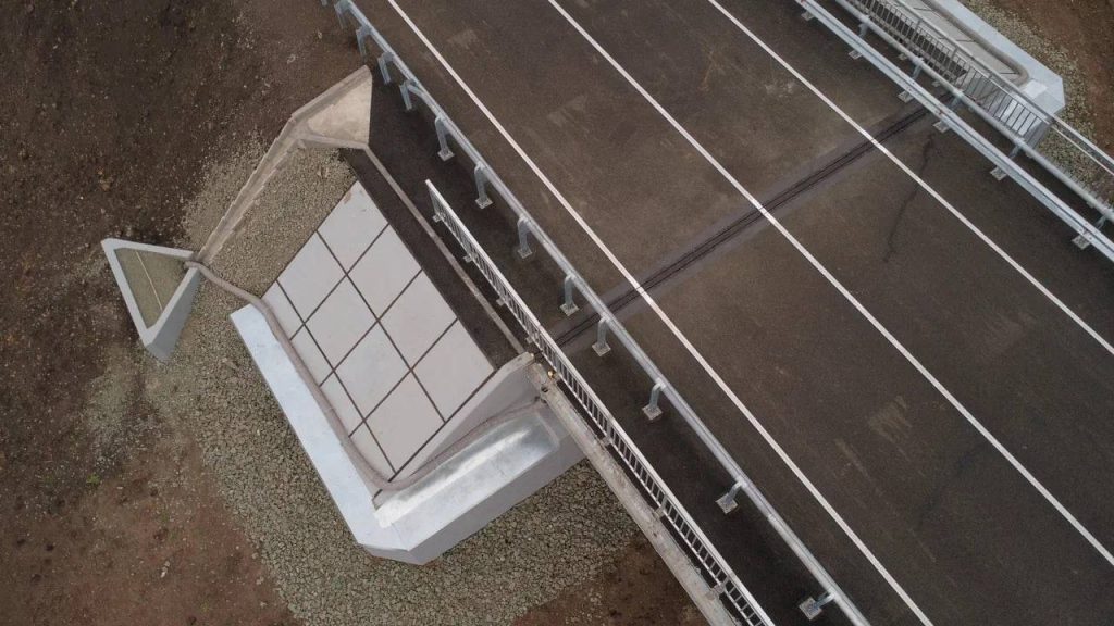 В ходе работ были устроены береговые опоры, пролетное строение, мостовое полотно с деформационными швами, гидроизоляцией и асфальтобетонным покрытием, барьерные и перильные ограждения, системы водоотведения. Оборудованы подходы к мосту с асфальтобетонным покрытием.