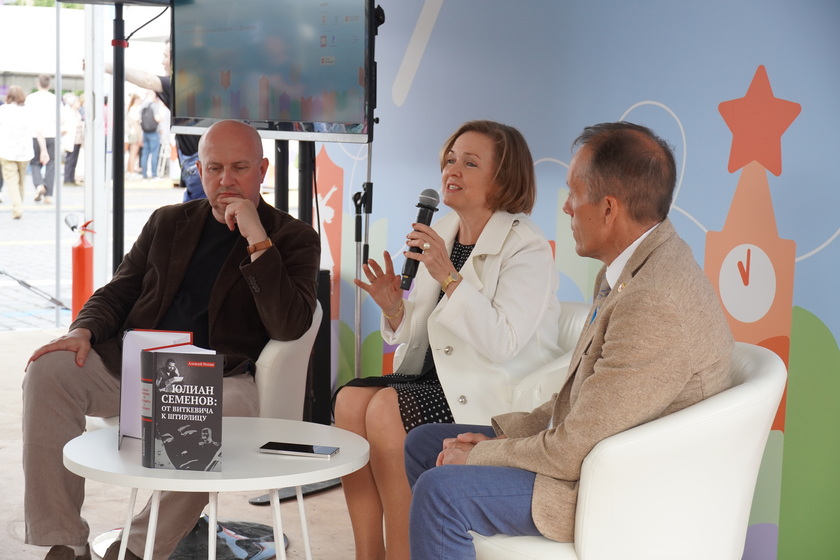 О том, насколько значимой для отца темой была Великая Отечественная война, поделилась на Красной площади дочь легендарного писателя Юлиана Семенова. Ольга Семенова – руководитель Культурного фонда Юлиана Семенова и директор дома-музея писателя в Крыму. По просьбе ведущего встречи она рассказала об этом бесплатном частном музее, а автор первой фундаментальной биографии «Юлиан Семенов: от Виткевича к Штирлицу» историк Алексей Репин представил зрителям свой 752-х-страничный труд.