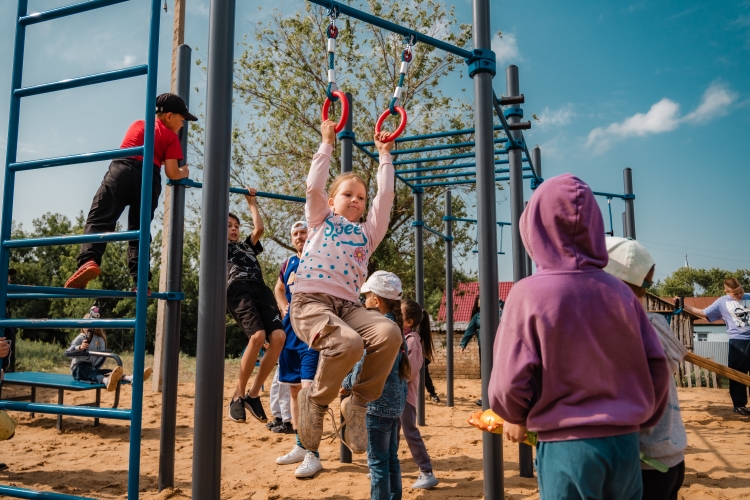 Площадку для гимнастики установили рядом с детской игровой площадкой, которая ранее появилась в селе также благодаря помощи оренбургских газодобытчиков.