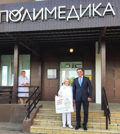 Заместитель председателя Оренбургского городского Совета Алексей Кузьмин и депутат городского Совета Евгений Кашпар поздравили сотрудников поликлиники «Полимедика», которая в этом году отмечает не только День медицинского работника, но и третью годовщину со дня основания, и по сложившейся традиции вручили врачам сладкие подарки – торты.