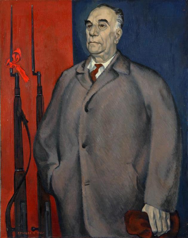 Соцреализм. Очень модное сейчас направление в искусстве предполагало идеализированное, нарочито позитивное изображение будней советских людей и народного хозяйства. Здесь Ерышев тоже оставил яркий след: он писал не только трудовые сцены, но и оставил множество портретов наших земляков. На его картинах оренбургские большевики, токари, пуховницы — люди, которые действительно много и честно работали и сделали что-то выдающееся.