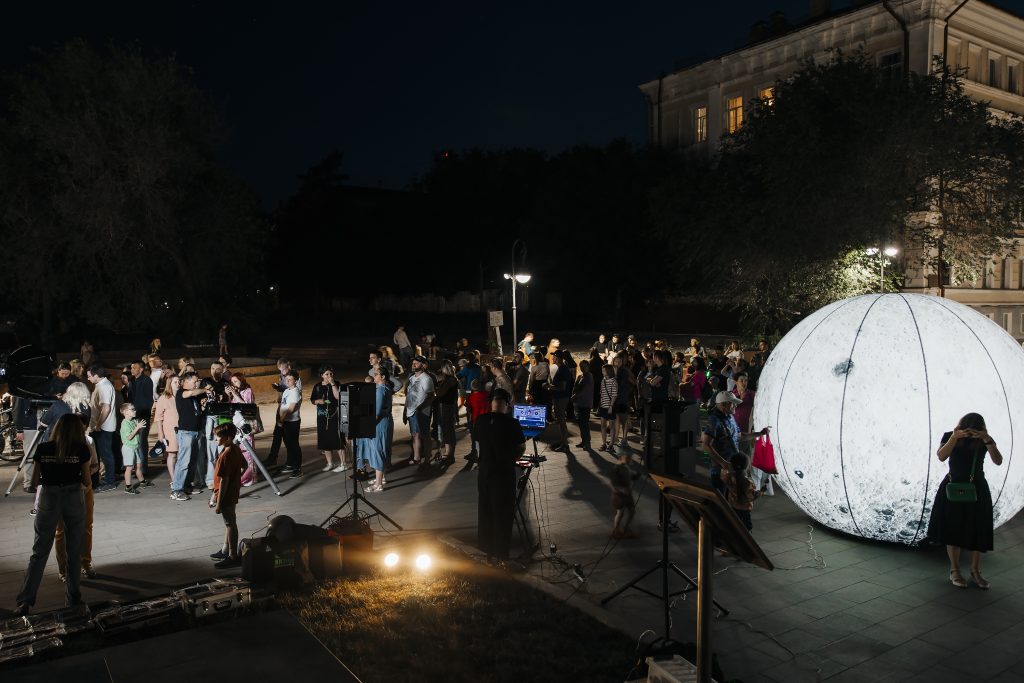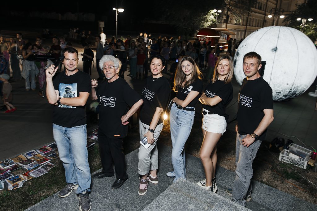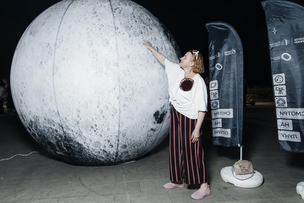 Заметными на Советской проект и команду сделала большая надувная Луна – новый арт-объект, который в этом сезоне сопровождает тротуарные наблюдения в Оренбурге. Вместе с командой за естественным спутником Земли также следили сотрудники Музея истории города, которые традиционно выходят на набережную с телескопом.