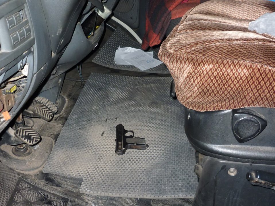 При осмотре фургона полицейские обнаружили самодельный пистолет и патроны к нему. На место вызвали подкрепление.