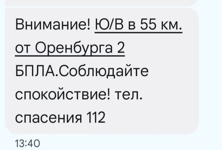 В тексте содержится информация о двух беспилотниках. Их заметили в 55 километрах к юго-востоку от Оренбурга.