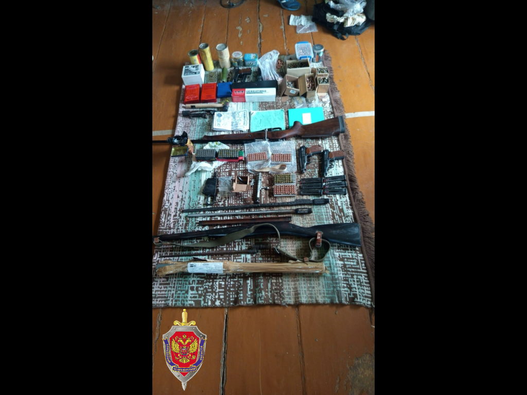 Во время обысков у него изъяли 2 сигнальных пистолета, переделанных под стрельбу боевыми патронами, 1177 патронов калибра 9 мм, пригодных для стрельбы, 404,1 г взрывчатого вещества, а также составные части огнестрельного оружия.
