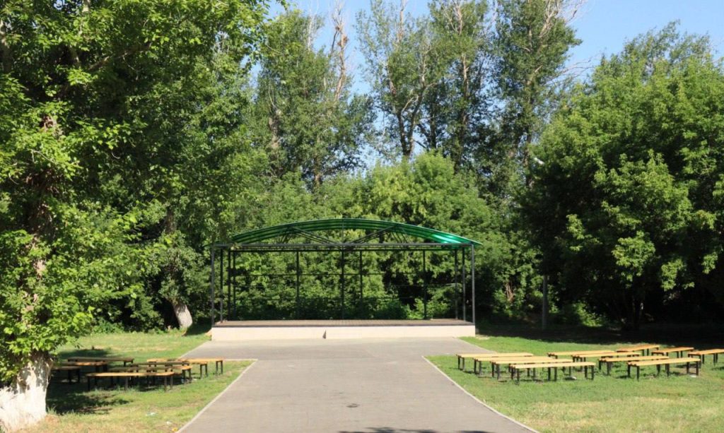 После благоустройства в парке Победы в Акбулаке появились новая сцена, парковка для велосипедов, скамейки и освещение. Также по периметру общественного пространства установили новое ограждение, на территории установили малые архитектурные формы.