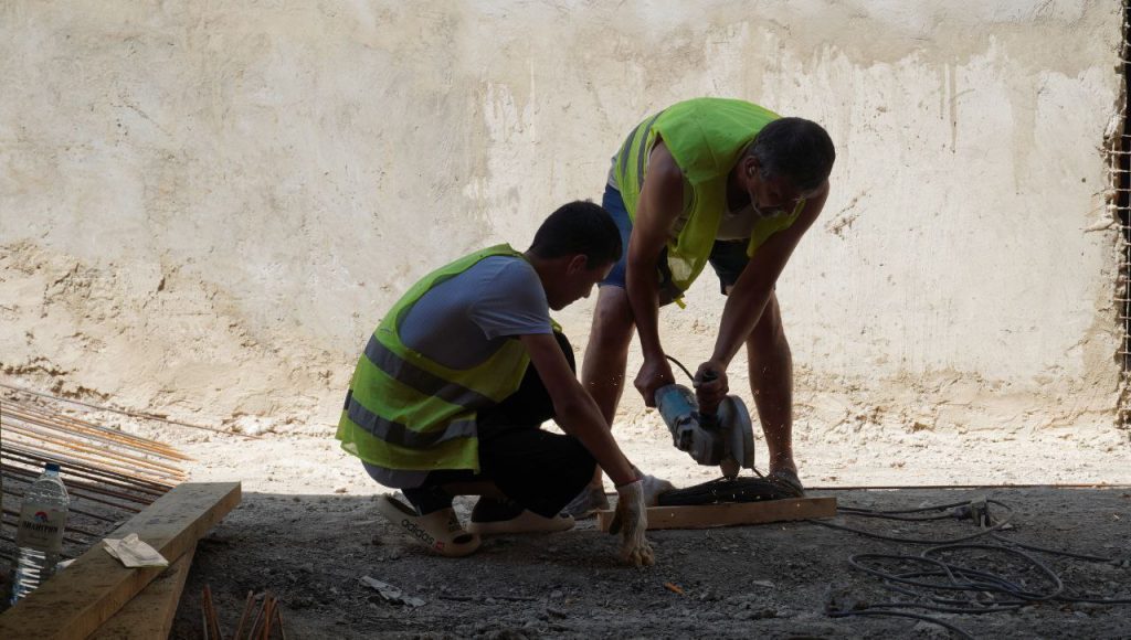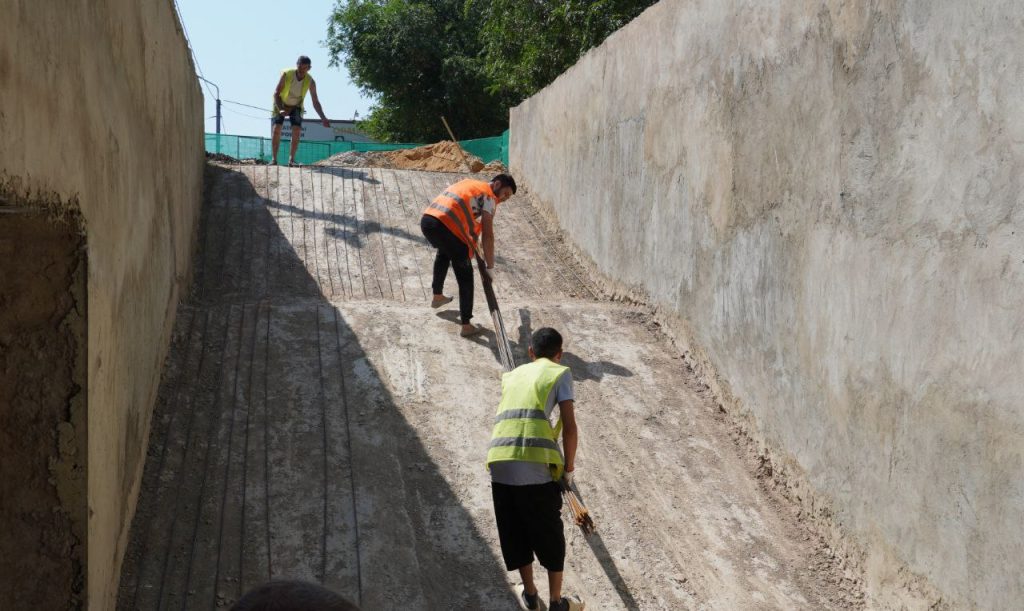 В настоящее время на переходе уже демонтировали лестничные марши и покрытие стен. Рабочие приступили к оштукатуриванию и формированию новых ступеней.