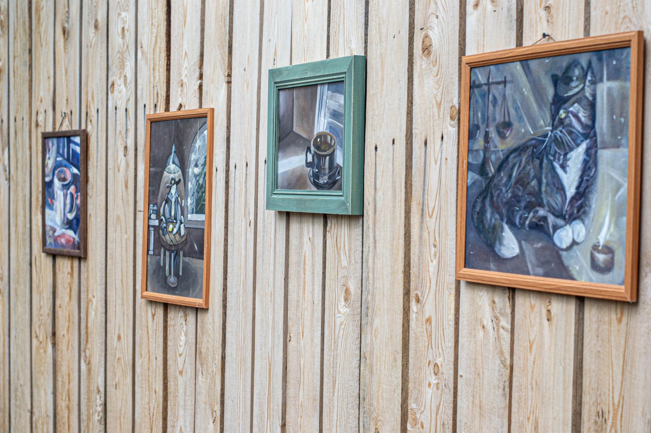 Музей и художник выбрали новую для города тактику и форму экспонирования. Картины размещены не в музейных залах, а во дворике, прямо на заборе. Это придает им особый шарм.