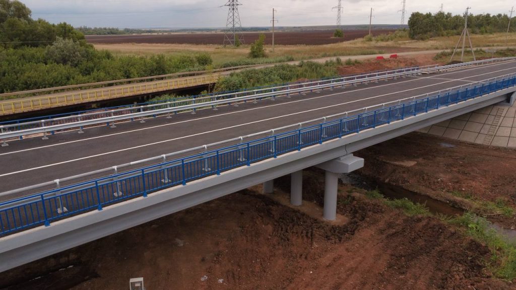 Мост через реку Гусиха расположен на 45 км автомобильной дороги Переволоцкий – Кичкасс. В настоящее время готовность объекта превышает 90%.