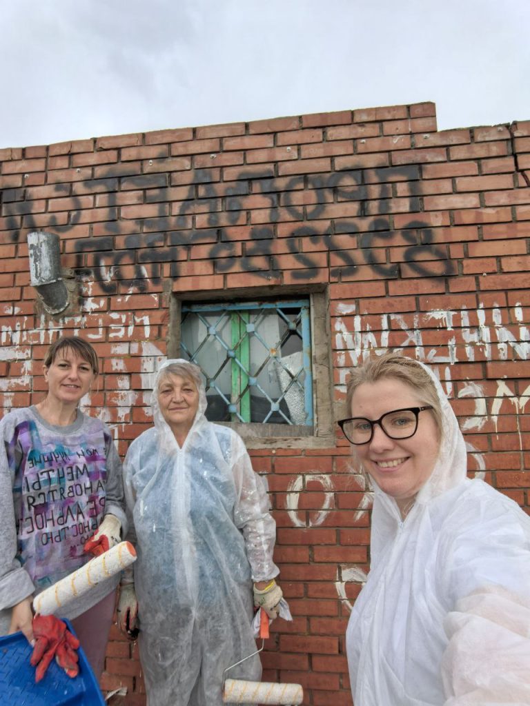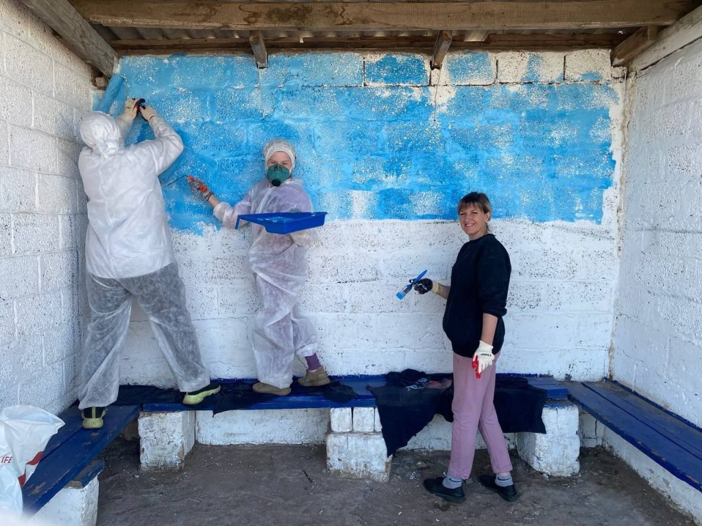 Авторы приобрели все необходимые материалы: кисти, краски, грунтовку, залили новые полы, установили новые лавочки. Всё это стало возможным благодаря поддержке местных предпринимателей. (Чертов В.А., Дементьев С.Ю., Некрылов А.Г., Занько А.Н., Тарасов А.В.)