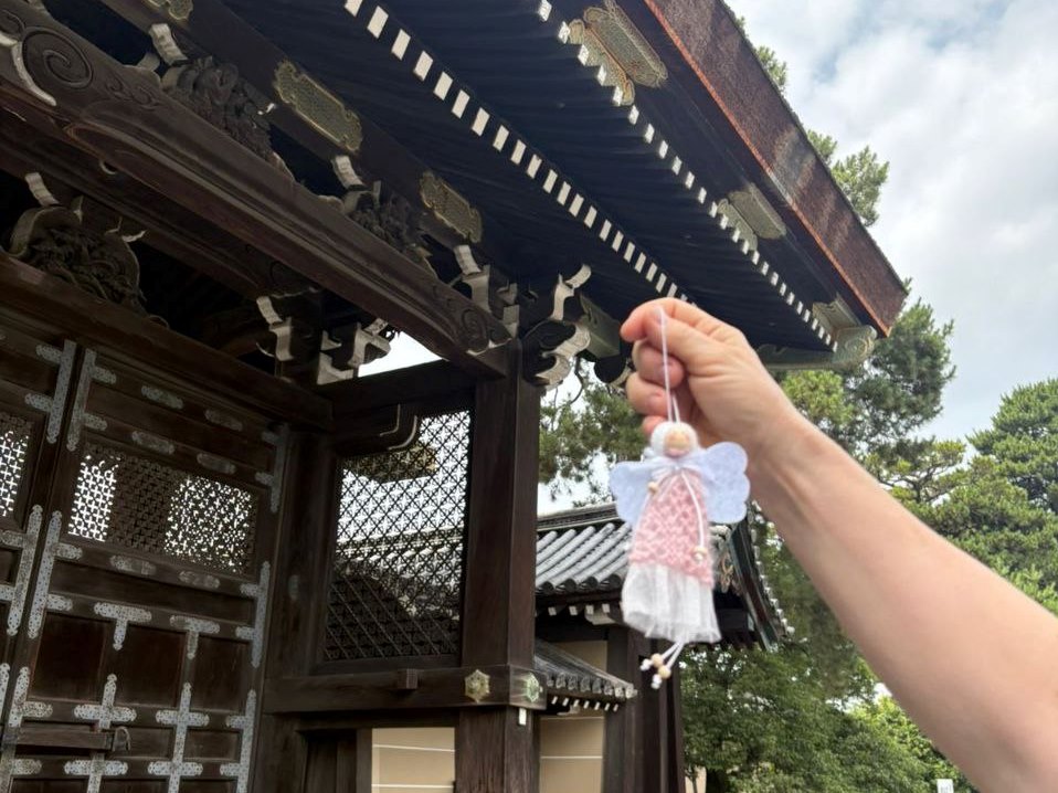 Пока корсет из паутинки проводит свои «римские каникулы», ангел «Маленькое чудо» отдыхает у подножия Фудзиямы. Фигурку из коллекции Дома пуховой моды взяла с собой в Японию оренбургская путешественница. Оренбургский ангел вместе со своей хозяйкой  наслаждался невозмутимой вершиной горы и слушал шум бамбукового леса.