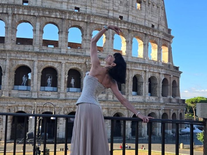 Так, прима-балерина Мариинского театра Александра Иосифиди в корсете с элементами оренбургского пухового платка закружила в танце у Колизея. Эффектный наряд удачно вписался в античные пейзажи.