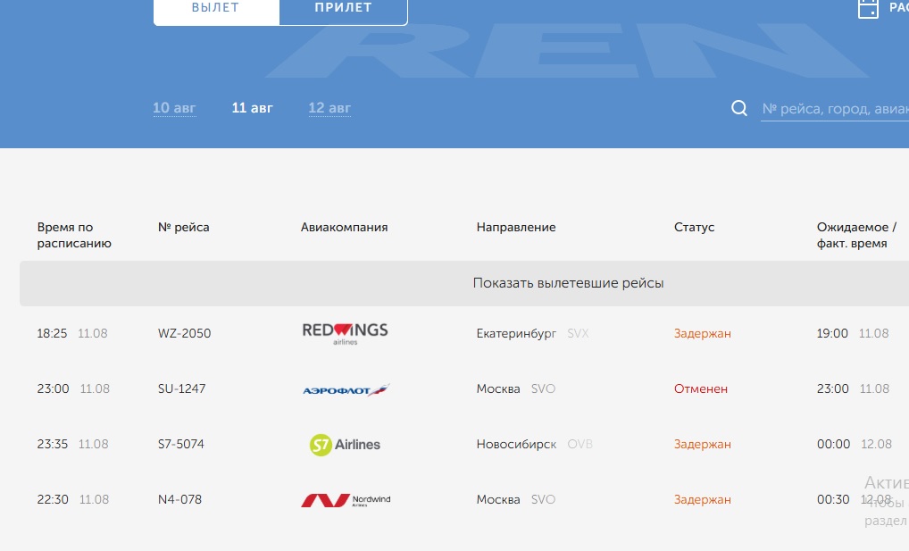 На вылет задержаны три рейса – в Екатеринбург, Москву и Новосибирск. Вечерний столичный рейс отменен.