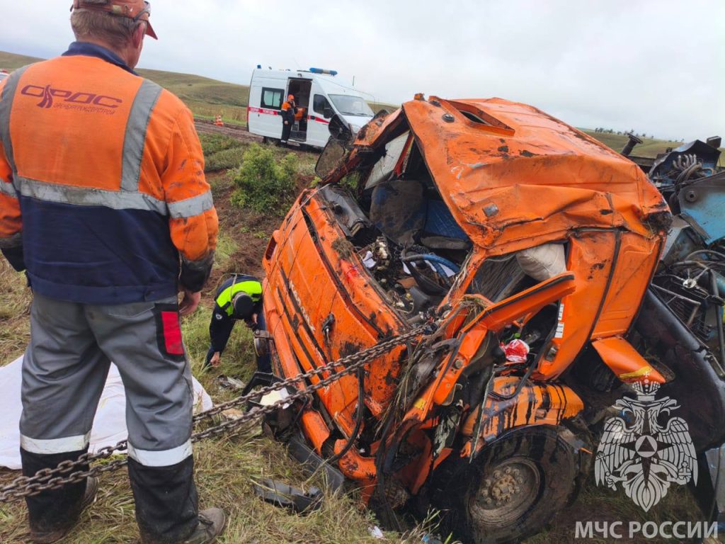 По оперативным данным, на трассе в Пономаревском районе между селами Беседино и Фадеевка КамАЗ съехал с дороги в овраг. Грузовик опрокинулся.