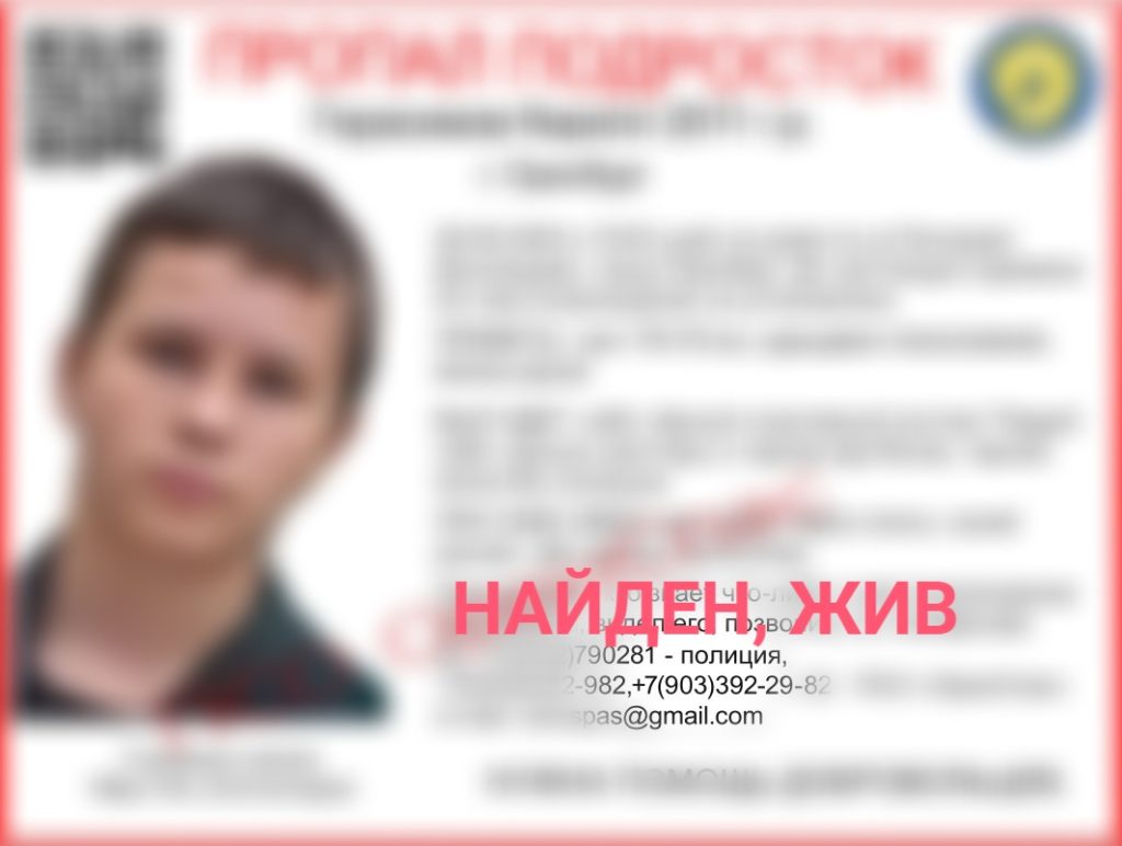 Всех, кто что-либо знает о местонахождении подростка или видел его, просят позвонить по телефонам: 02, +7(3532) 790281 — полиция, +7(3532) 222-982,+7(903)392-29-82 — ПСО «ОренСпас».