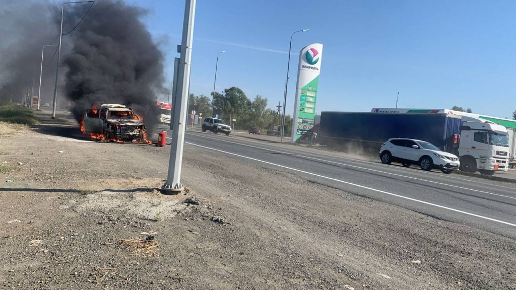 На федеральной трассе Оренбург-Орск около села Краснощеково сгорел легковой автомобиль, сообщили в ГУ МЧС по Оренбургской области.