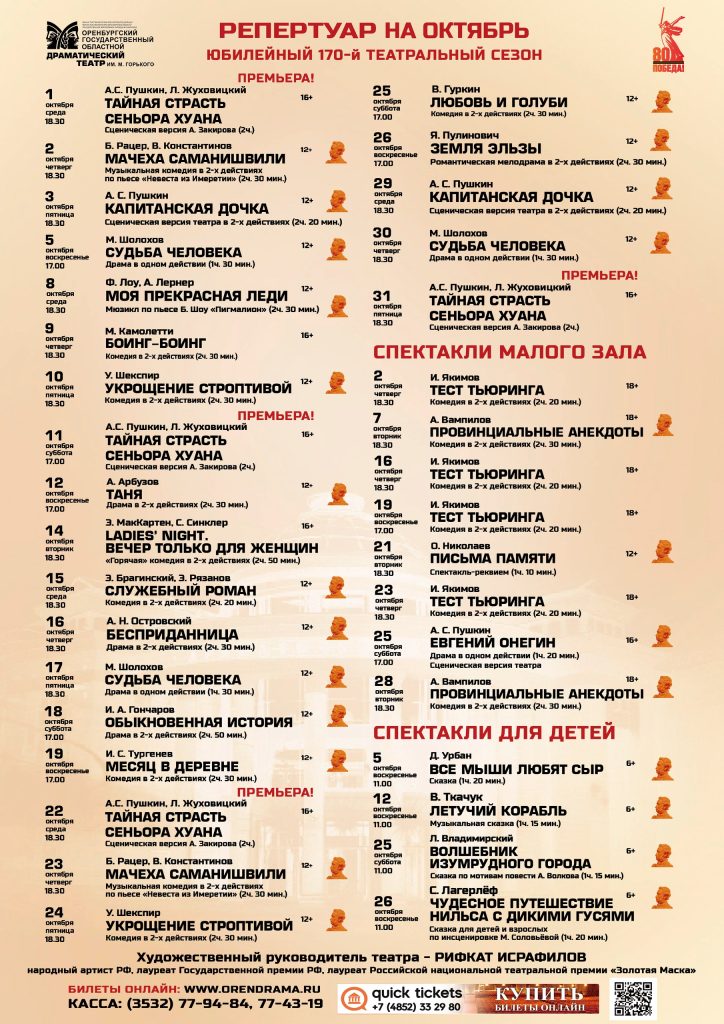 Оренбургский государственный областной драматический театр имени Горького по традиции открыл 170-ый юбилейный сезон премьерой.