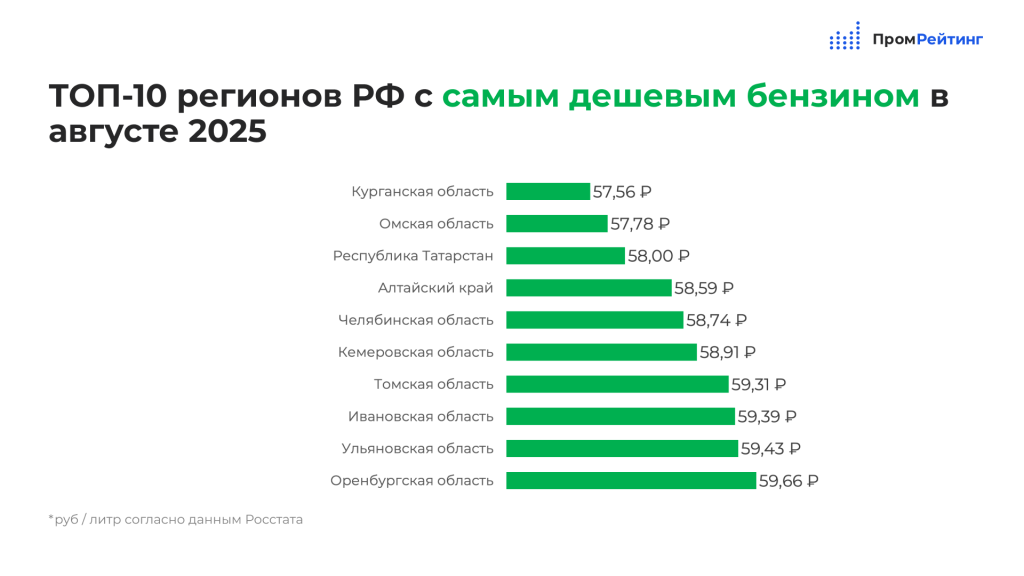 Лидером списка регионов с самым дешевым бензином стала Курганская область. А вот Оренбуржье оказалось на последнем десятом месте. Оно стало дебютантом рейтинга.
