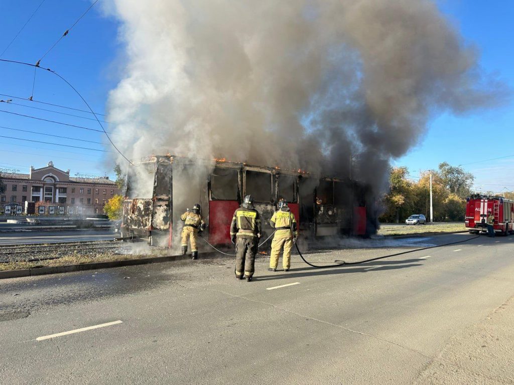 Инцидент произошел сегодня утром. Трамвай сгорел на проспекте Мира. Огонь почти полностью уничтожил вагон. Пострадавших нет.