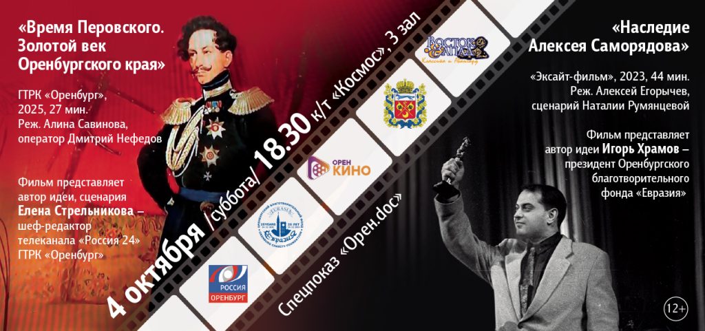 Специальный показ двух документальных фильмов оренбургской тематики «ОРЕН.doc» пройдет 4 октября, сообщает благотворительный фонд «Евразия».