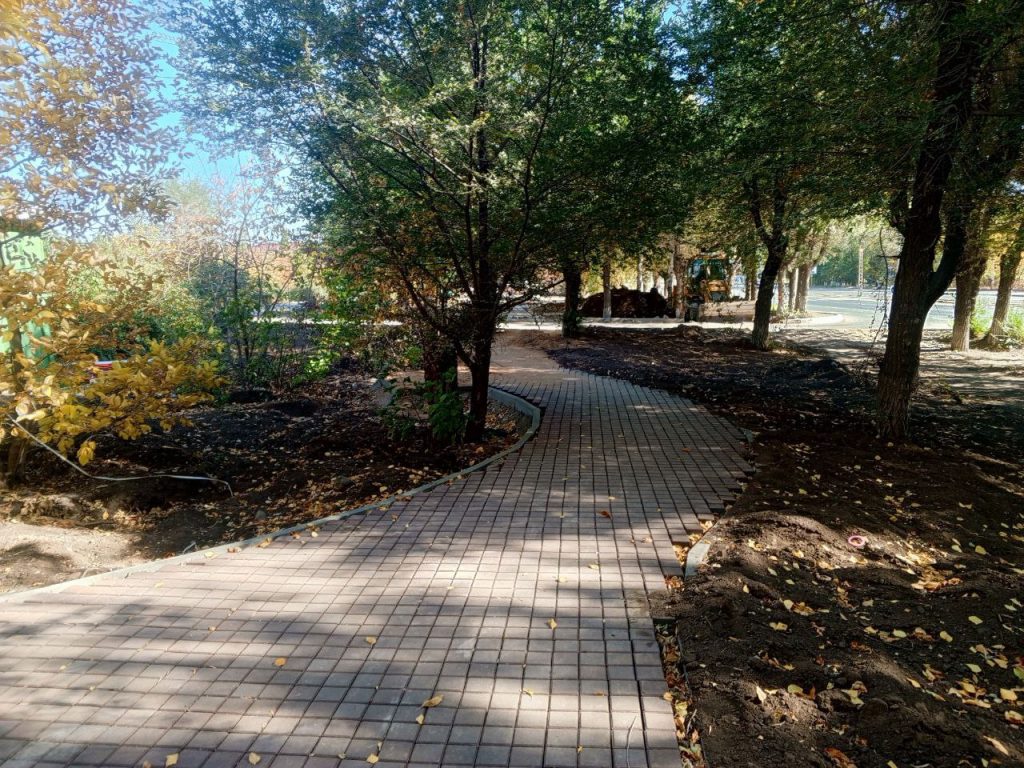 Сейчас рабочие устанавливают сцену, амфитеатр и сухой фонтан. Впереди укладка тротуарной плитки в нескольких местах, установка малых архитектурных форм и монтаж освещения.