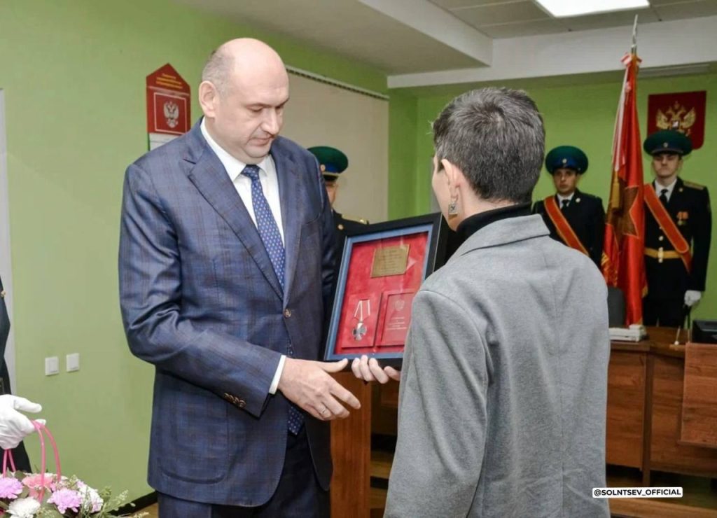 Евгений Солнцев передал награду членам семьи погибшего пограничника.